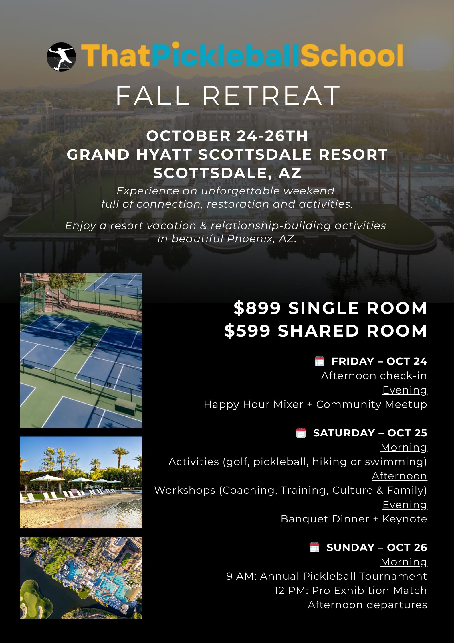 Check out this video from Kyle to learn more about the first-ever ThatPickleballSchool Retreat!