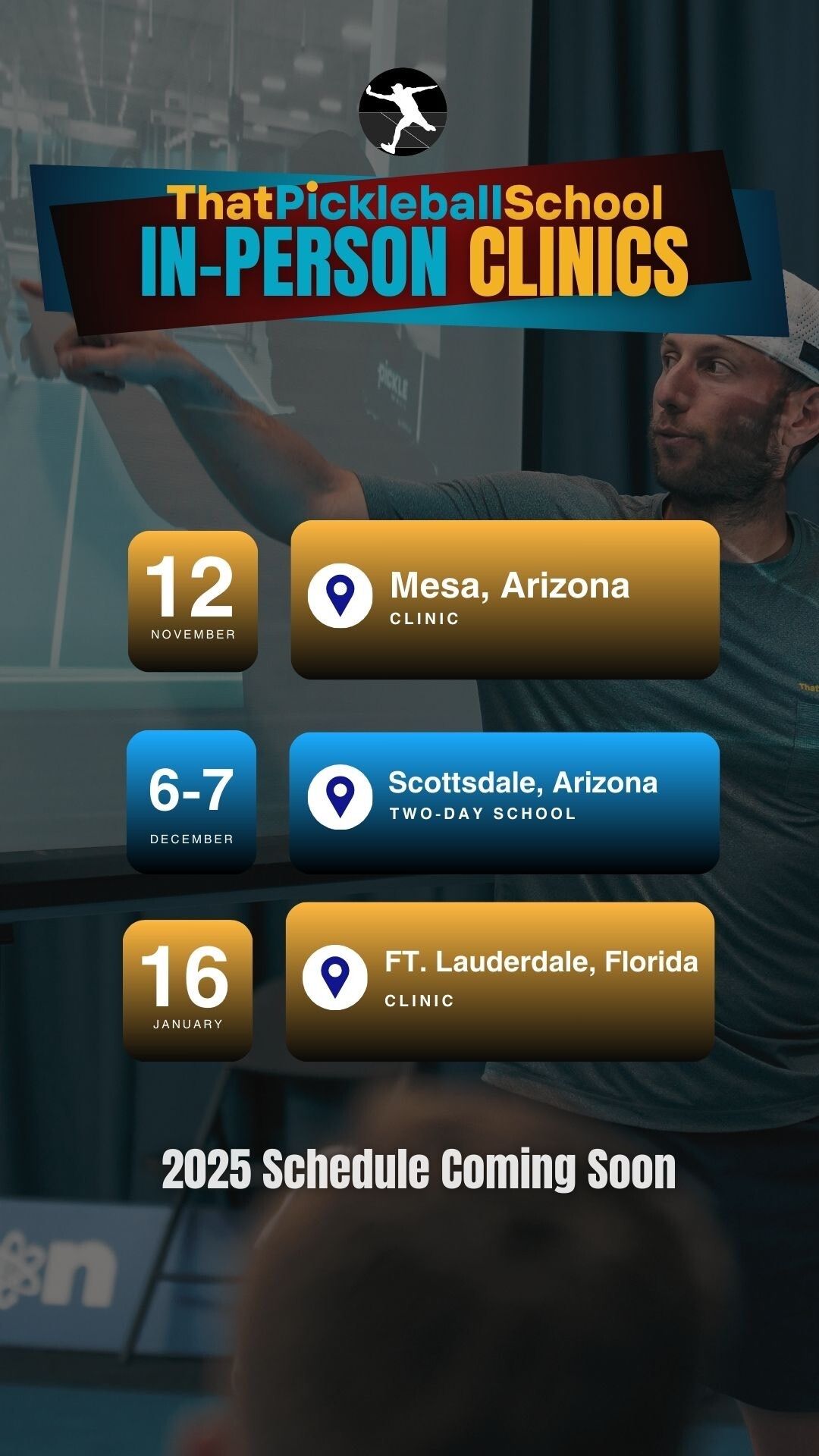 FYI - ThatPickleballSchool annual members receive 50% off in-person events!